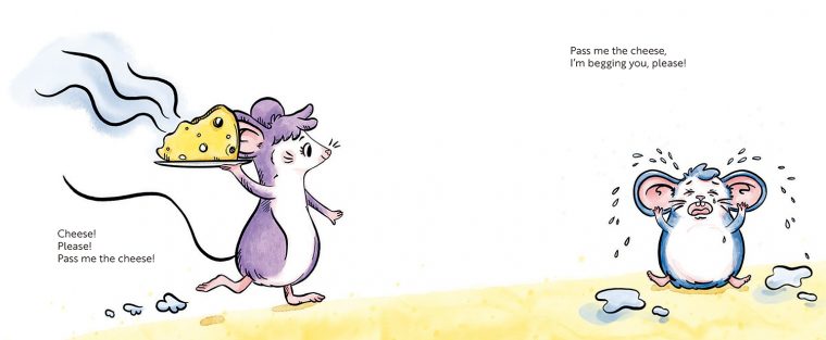 Cyril the Mouse is obsessed with cheese and will do anything to get a bite! But Sybil has other plans. From ballet leaps to cheese sculptures, camembert dives to a fondue shoe, Cyril’s cheesy dreams are always just out of reach. Then a sly cat joins the chase, and Cyril discovers that maybe too much cheese isn’t such a gouda idea after all. Packed with silly rhymes, lively illustrations, and fascinating cheese facts, Pass the Cheese is a feast of fun for readers who love humour, animals, and a big dollop of nonsense.